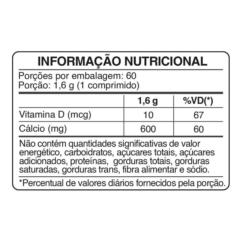INGREDIENTES: Carbonato de cálcio, Vitamina D3 (colecalciferol), antiumectante estearato de magnésio e estabilizante sorbitol.