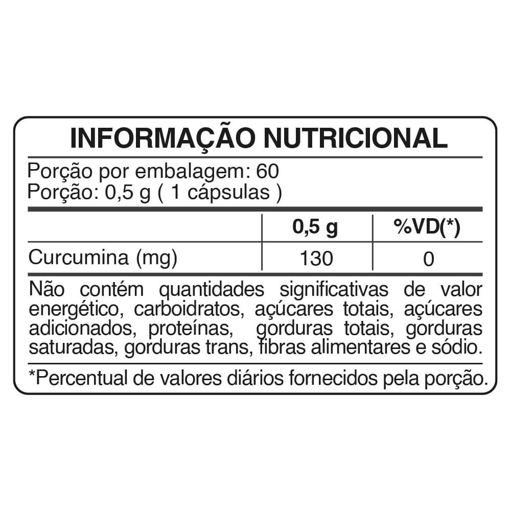 INGREDIENTES: Cúrcuma desidratada em pó, extrato de rizomas de Cúrcuma longa e antiumectante dióxido de silício.