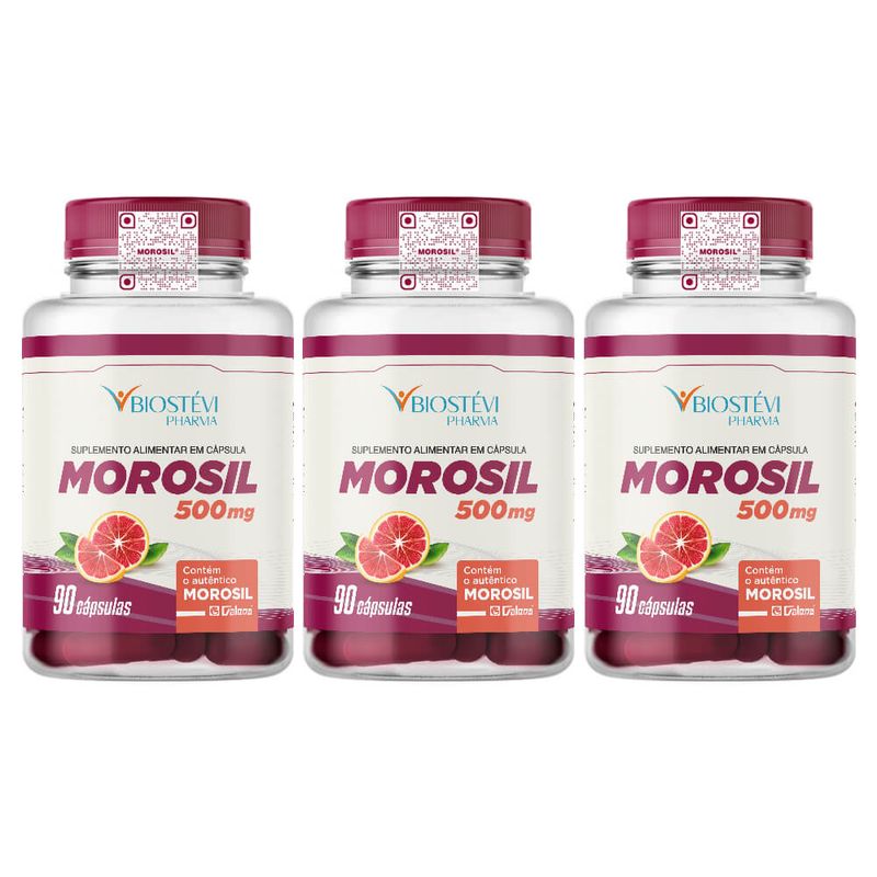 A Biostévi tem o Kit 3 Potes Morosil 500mg 90 cápsulas - com selo de autenticidade com melhor preço de mercado.