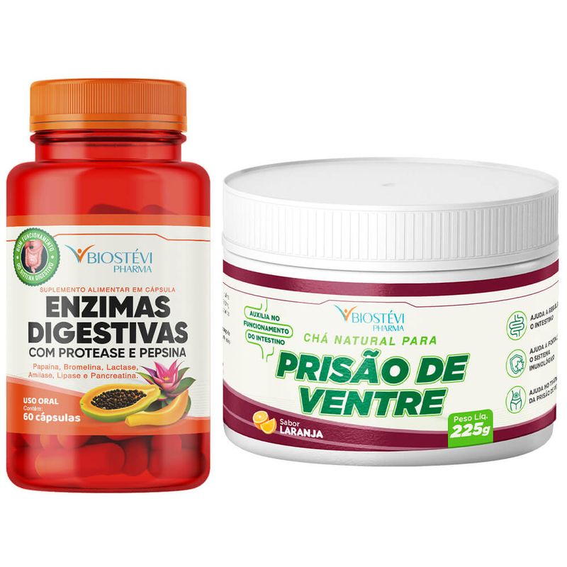 Kit Enzimas Digestivas + Protease e Pepsinas + Chá Natural para Prisão de Ventre Biostévi foi desenvolvido com o objetivo de melhorar a flora intestinal