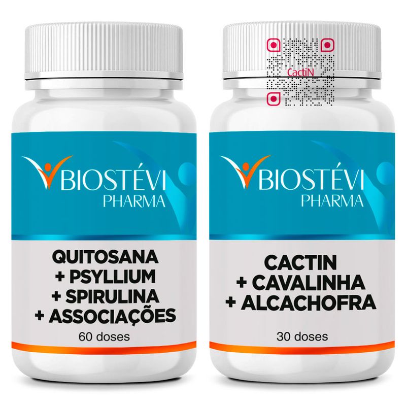 Kit quitosana + psyllium + spirulina + associações + xô inchaço | cactin + cavalinha + alcachofra